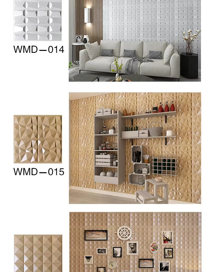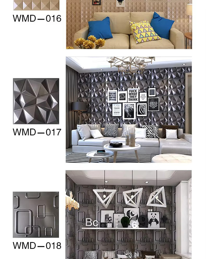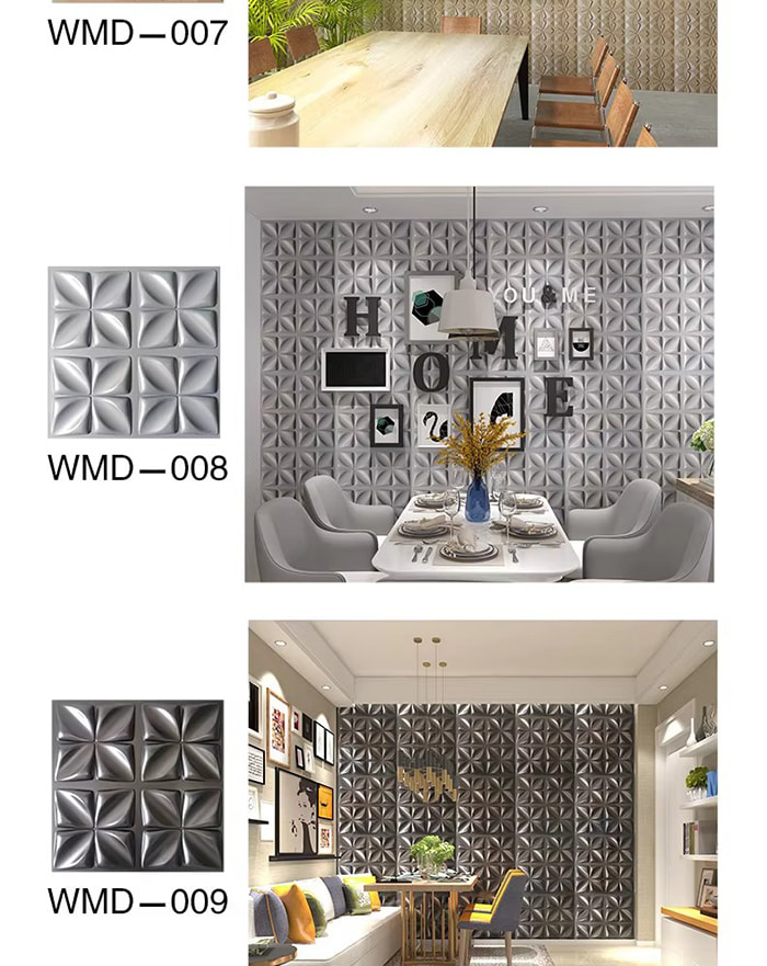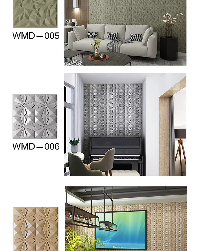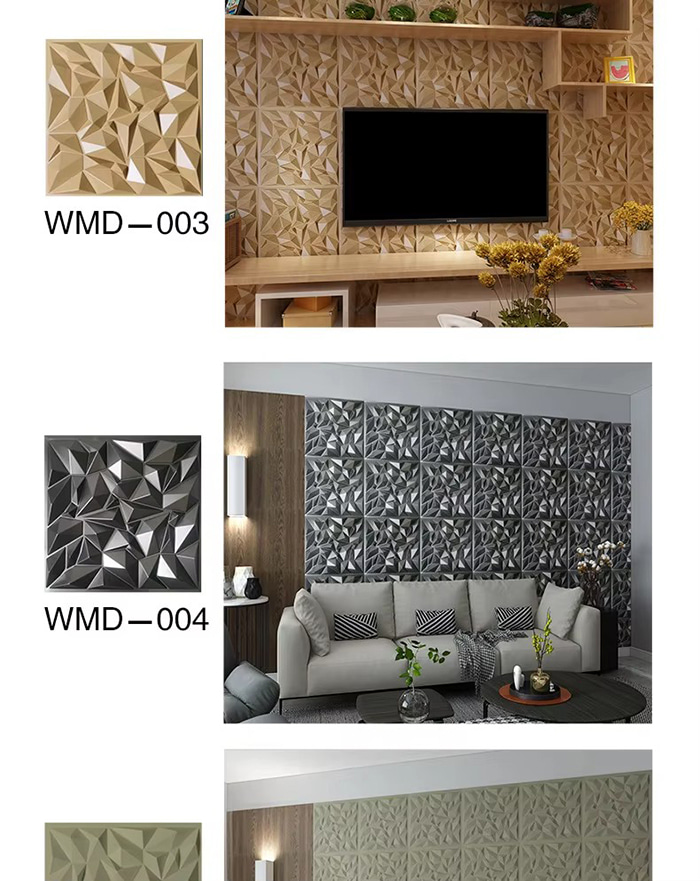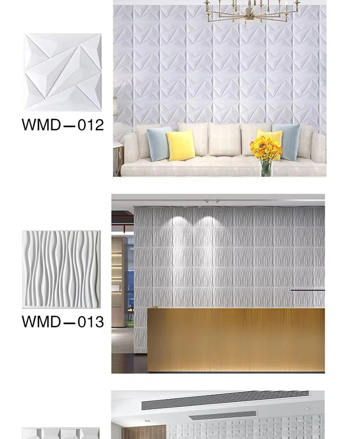 3D veggpaneler er en ny type dekorativt materiale. Gjennom varmpressing, gravering og fresing eller CNC-trykk, dannes tredimensjonale mønstre på overflaten av panelene. Dens basismaterialer inkluderer PVC, tetthetsplater, aluminiumslegering, bambusfiber, etc. Ta PVC som et eksempel, høymolekylære komposittmaterialer ekstruderes ved høy temperatur, og overflatemønstrene presses av presisjonsstålformer, med minimum konkave og konvekse presisjon som når 0,1 mm. 3D veggpaneler har en tredimensjonal visuell effekt. Gjennom prinsippet om lys- og skyggebrytning forvandles 2D-planet til en 3D visuell effekt med en følelse av dybde, og den visuelle lagdelingen økes med mer enn 3 ganger under samme område.