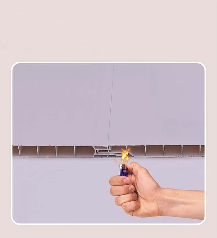 PVC-tak er et dekorativt materiale laget av polyvinylklorid (PVC) harpiks som hovedråstoff, kalsiumkarbonatpulver og stabilisator tilsettes, og det blandes gjennom høytemperatur- og høytrykksprosesser. Overflaten tar i bruk trykk-, overførings- eller lamineringsteknologi, som kan simulere ulike teksturer som trekorn og steinkorn, og har egenskapene til vanntett og fuktsikker, brannhemmende, lett vekt og høy styrke. Den er egnet for scener med høy luftfuktighet eller høye dekorative krav som kjøkken, bad, sykehus og kommersielle områder, og er en ideell erstatning for tradisjonelle gipsplater og aluminiumsplater.