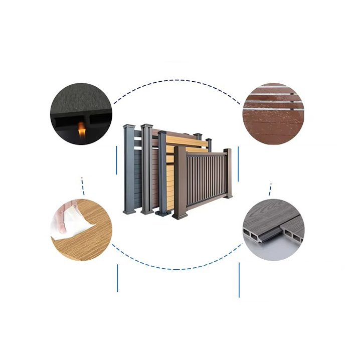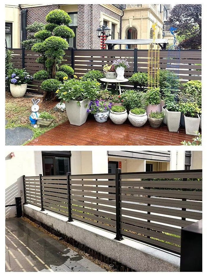 WPC-gjerder er et miljøvennlig gjerdemateriale laget av resirkulert trefiber og høydensitetspolyetylenplast (HDPE). Den har en tekstur og utseende som ligner på ekte tre, men unngår sprekker, deformasjoner, råtning og andre problemer som kan oppstå i ekte tre. WPC-gjerder er fuktsikker, korrosjonsbestandig, varmebestandig og termittbestandig, og kan farges eller farges for å oppfylle de nødvendige designspesifikasjonene. Installasjonsprosessen er enkel og rask, og krever ikke regelmessig maling eller annet vedlikeholdsarbeid, noe som reduserer brukskostnadene.